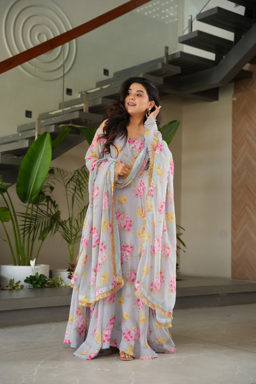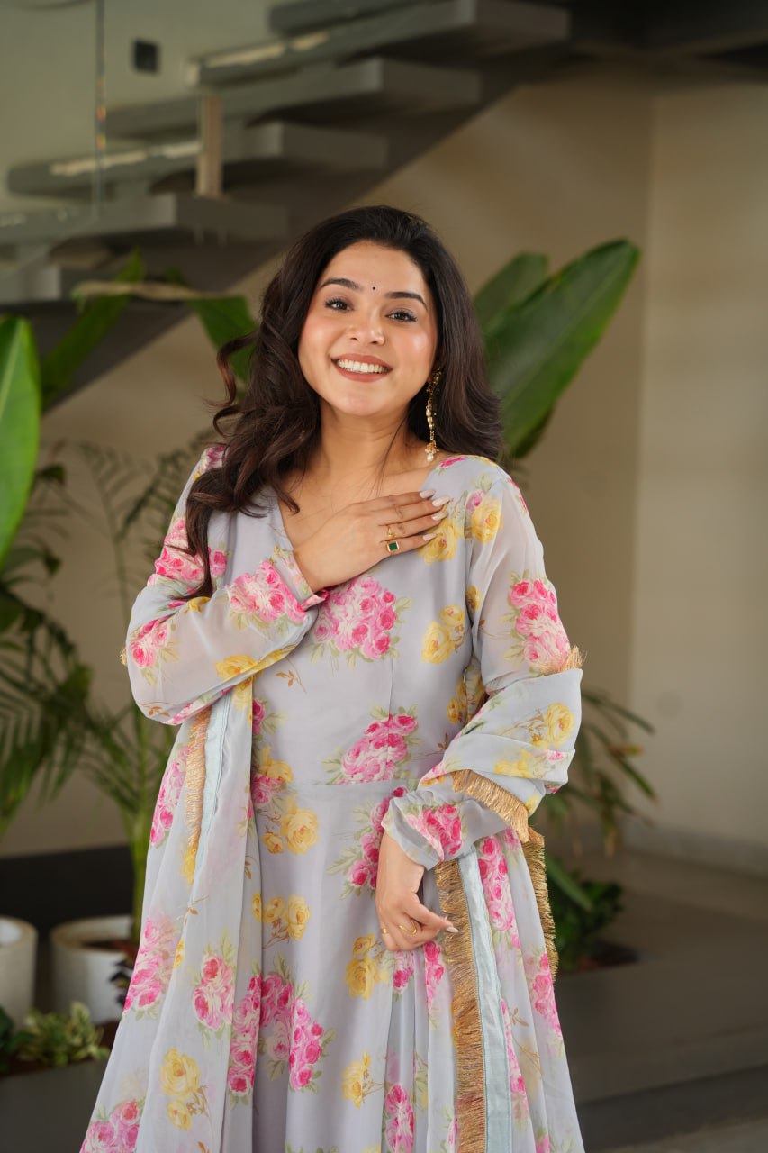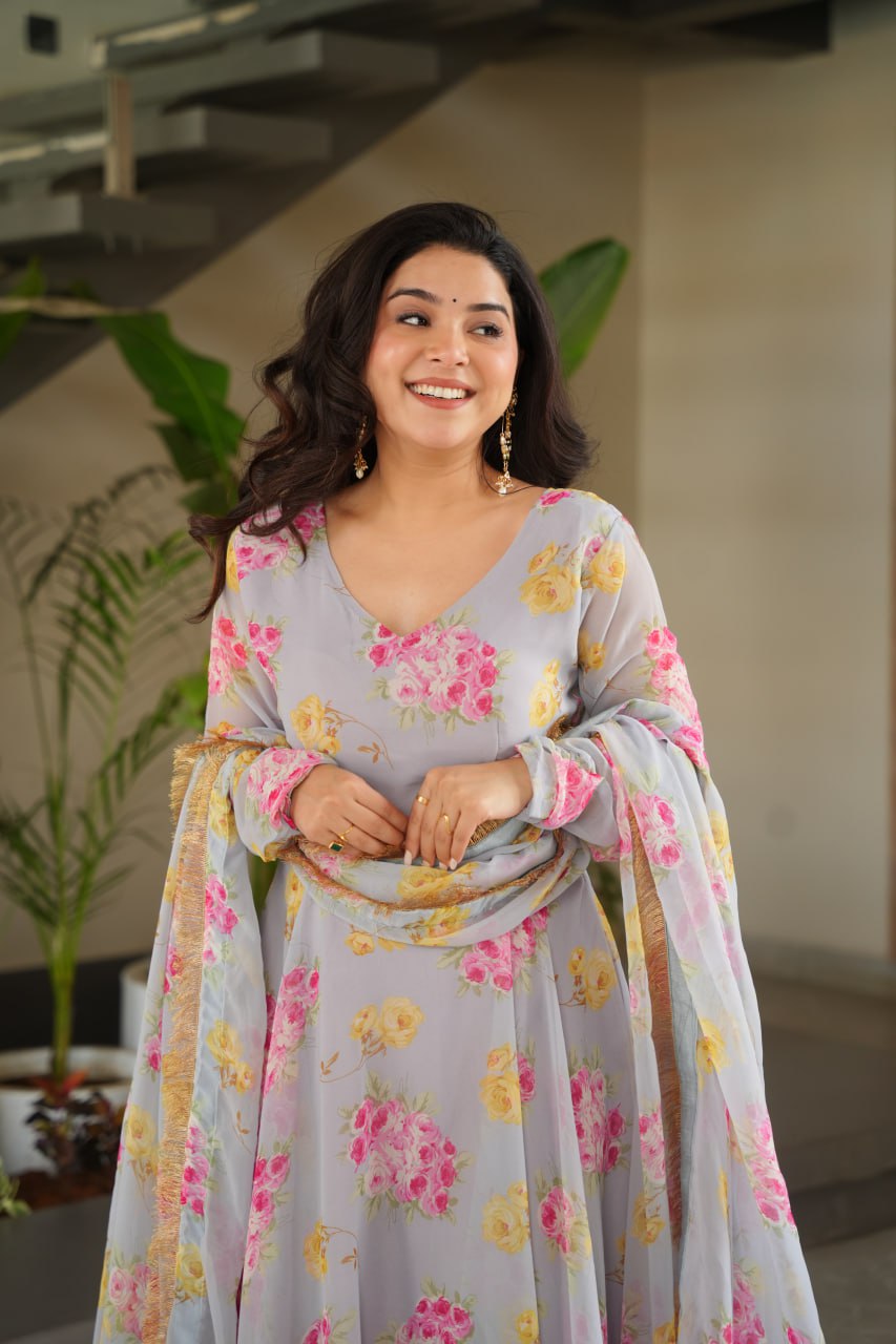 Charli Rich Flower Digital Print work Designer Gown