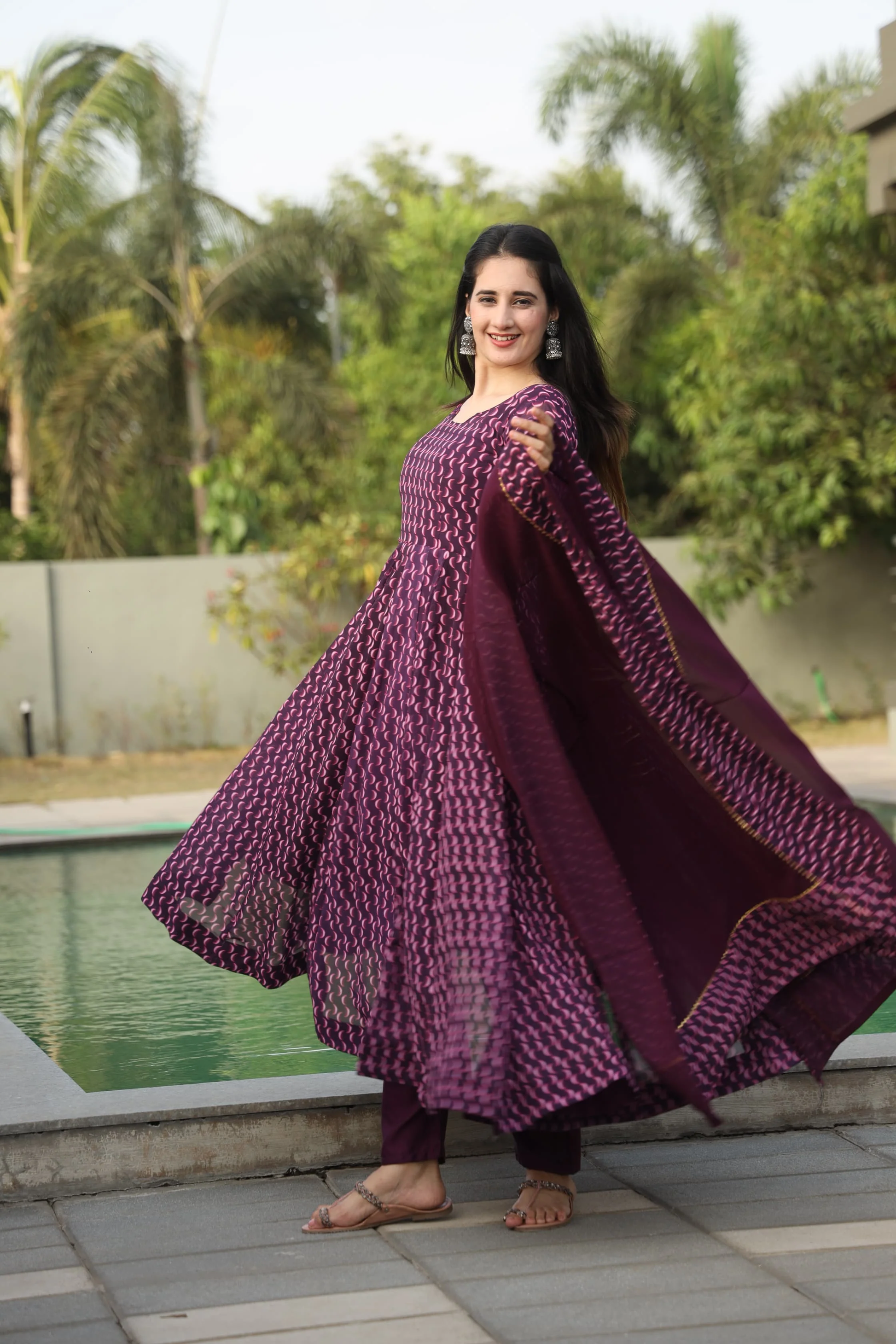 DHARANI'S WINE COLOURED ANARKALI SUIT SET TD-12