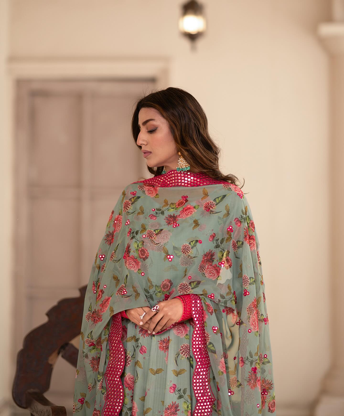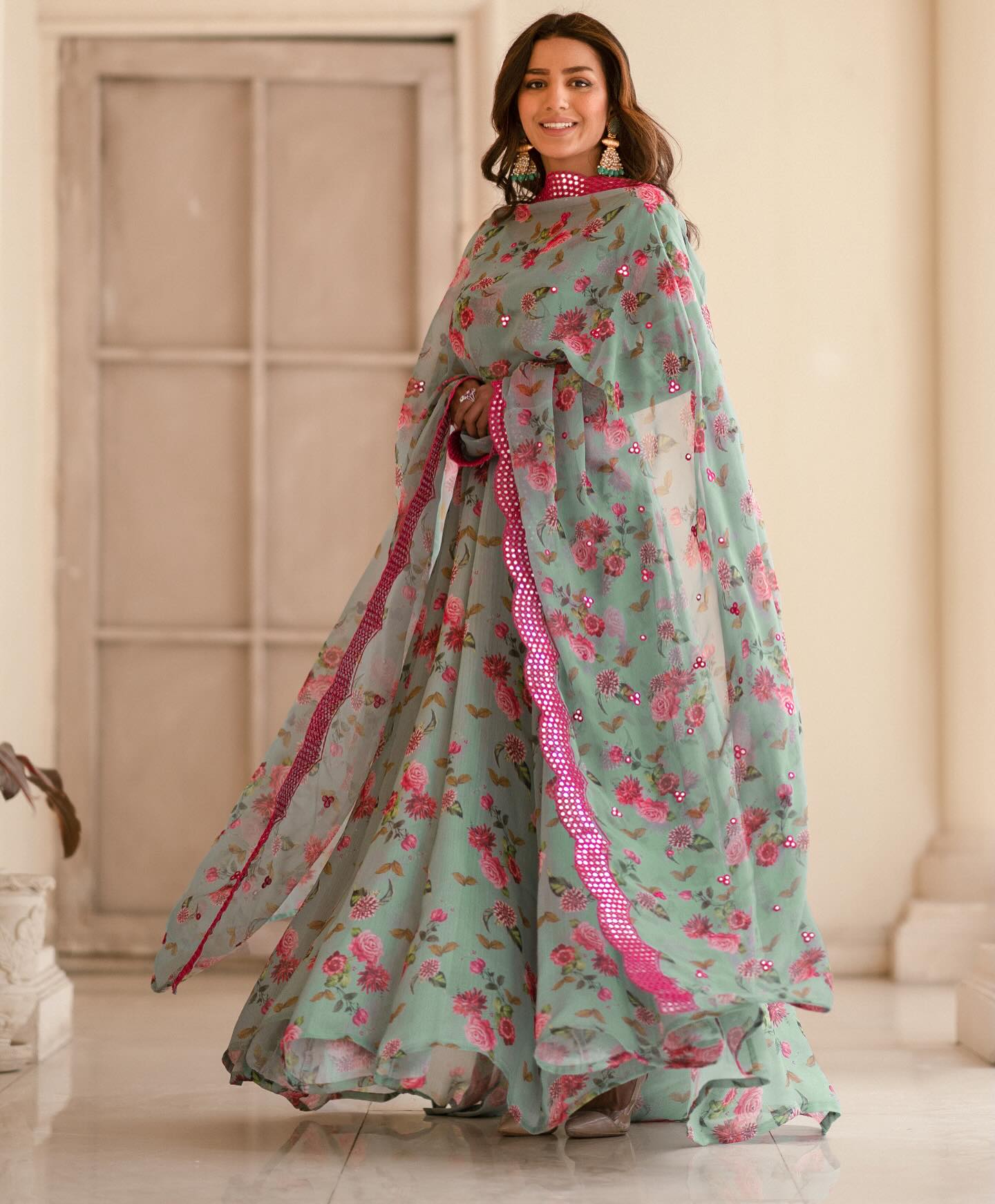 Falak Printed Sinon Fabric Gown And Dupatta Set