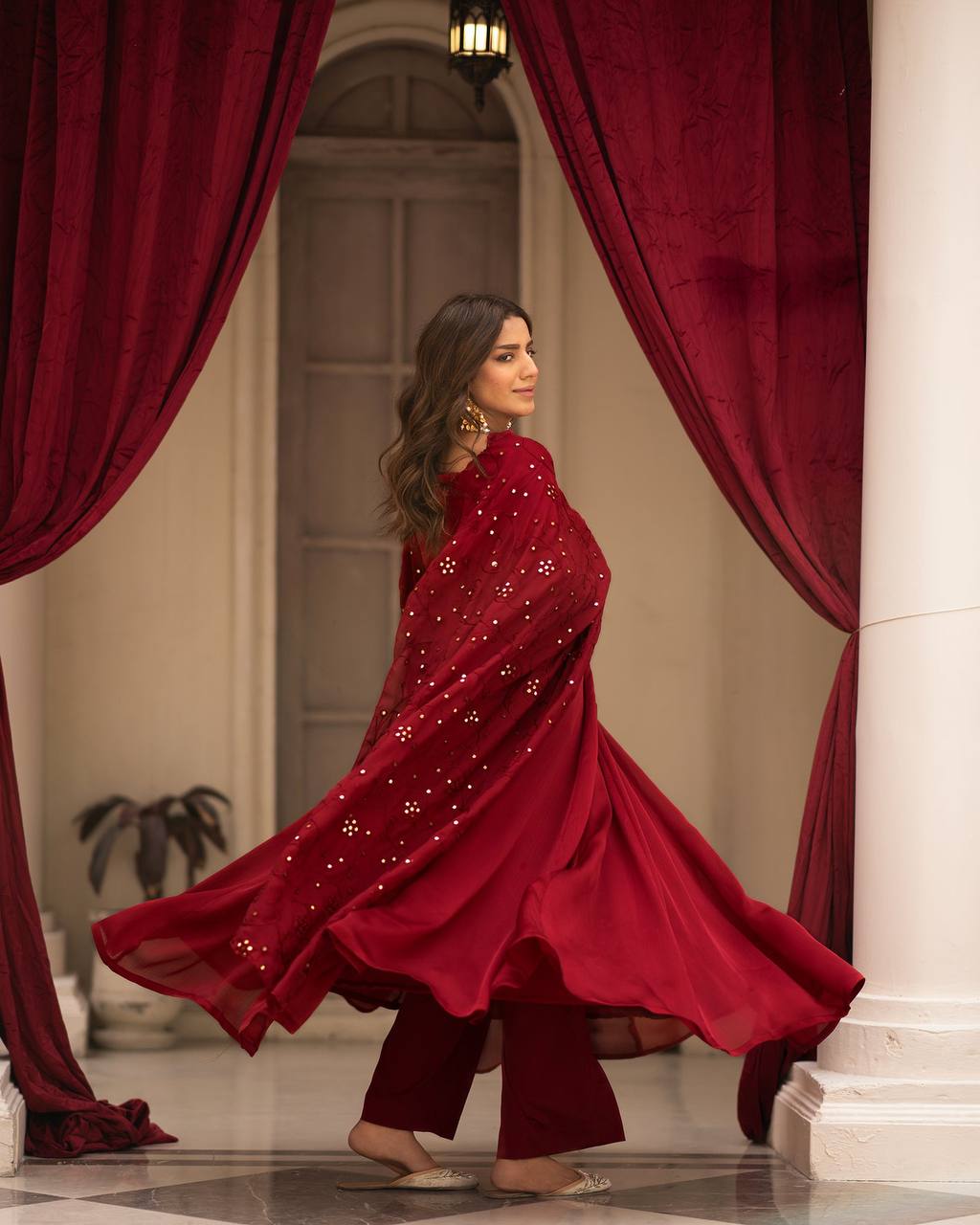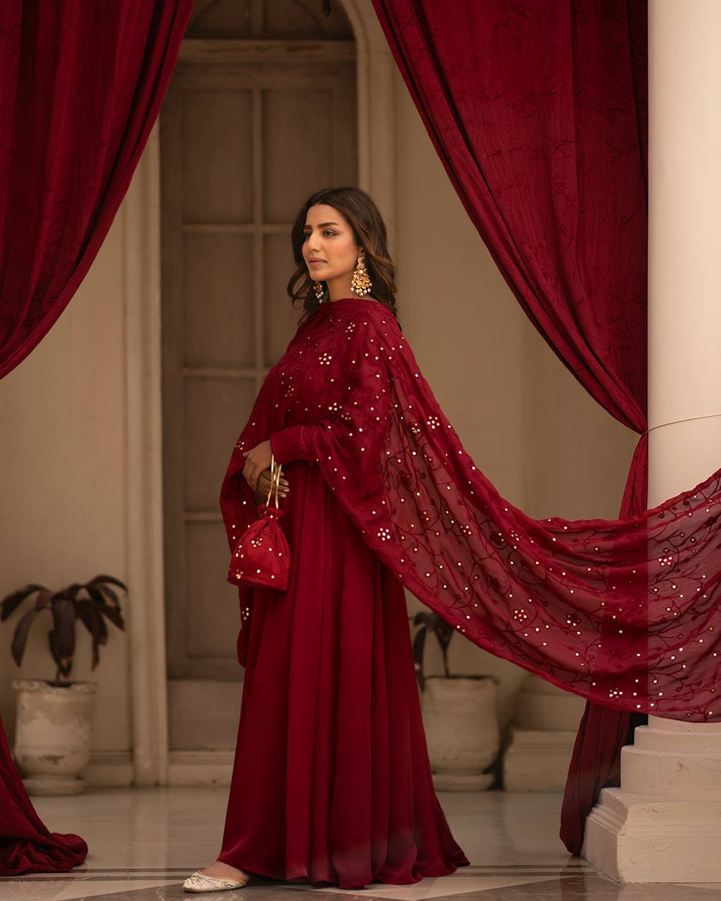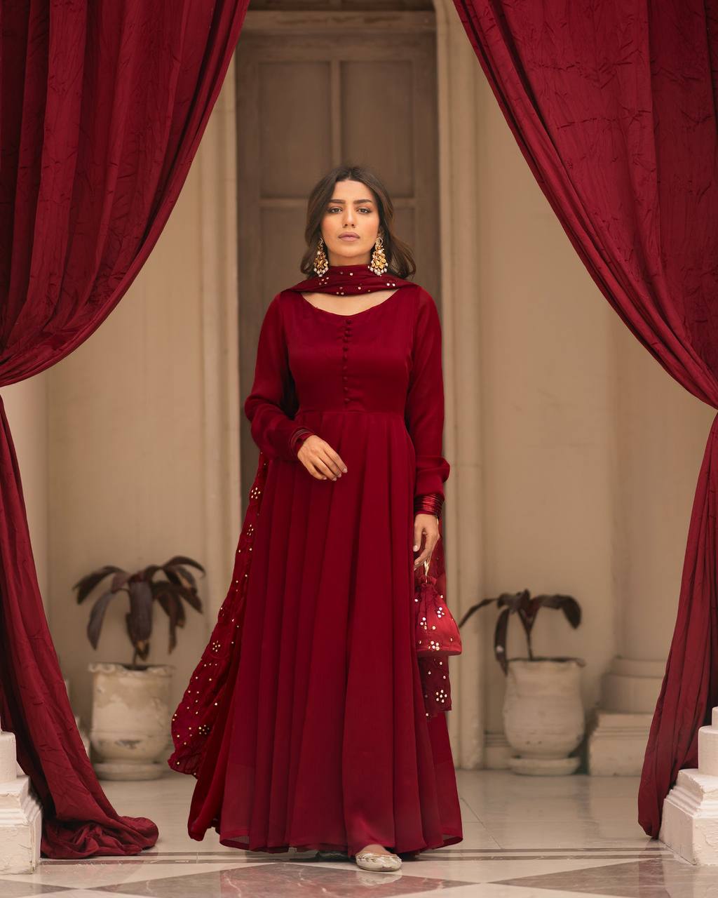 Radiate charm in our maroon gown, designed to make you stand out at any event. Each dress features intricate embroidery and a flowy silhouette, perfect for any occasion, from casual get-togethers to festive celebrations