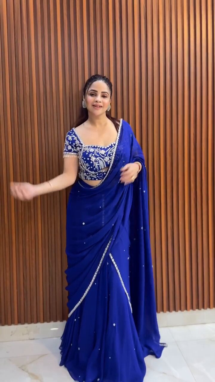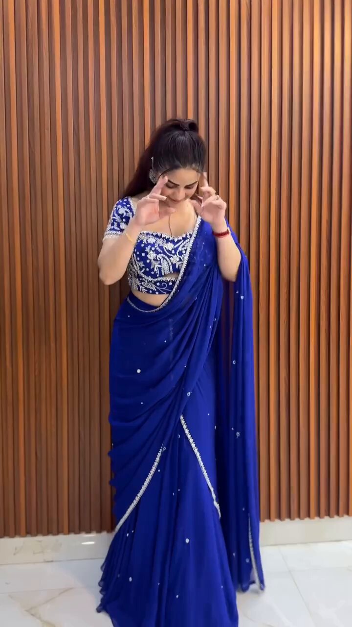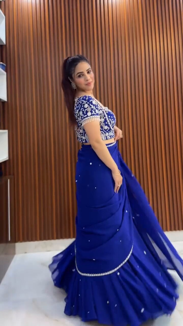 Glamorous Royal Blue Designer Embroidered Lehenga Saree