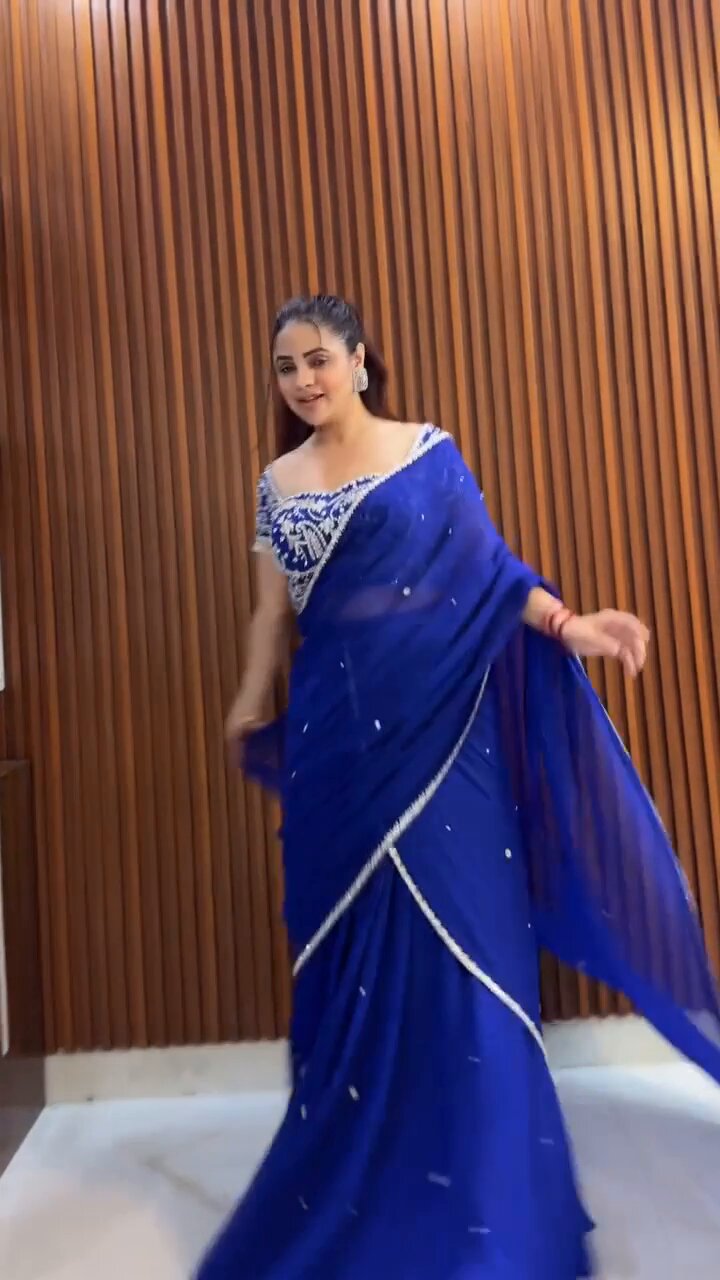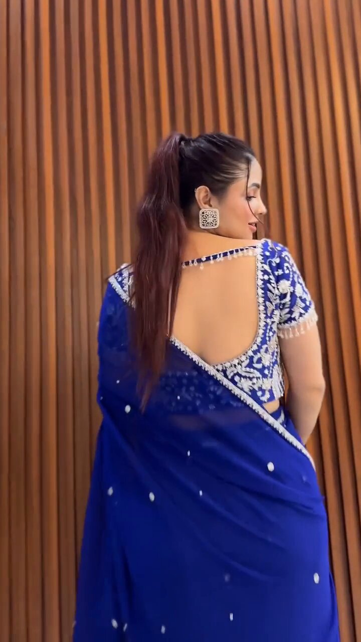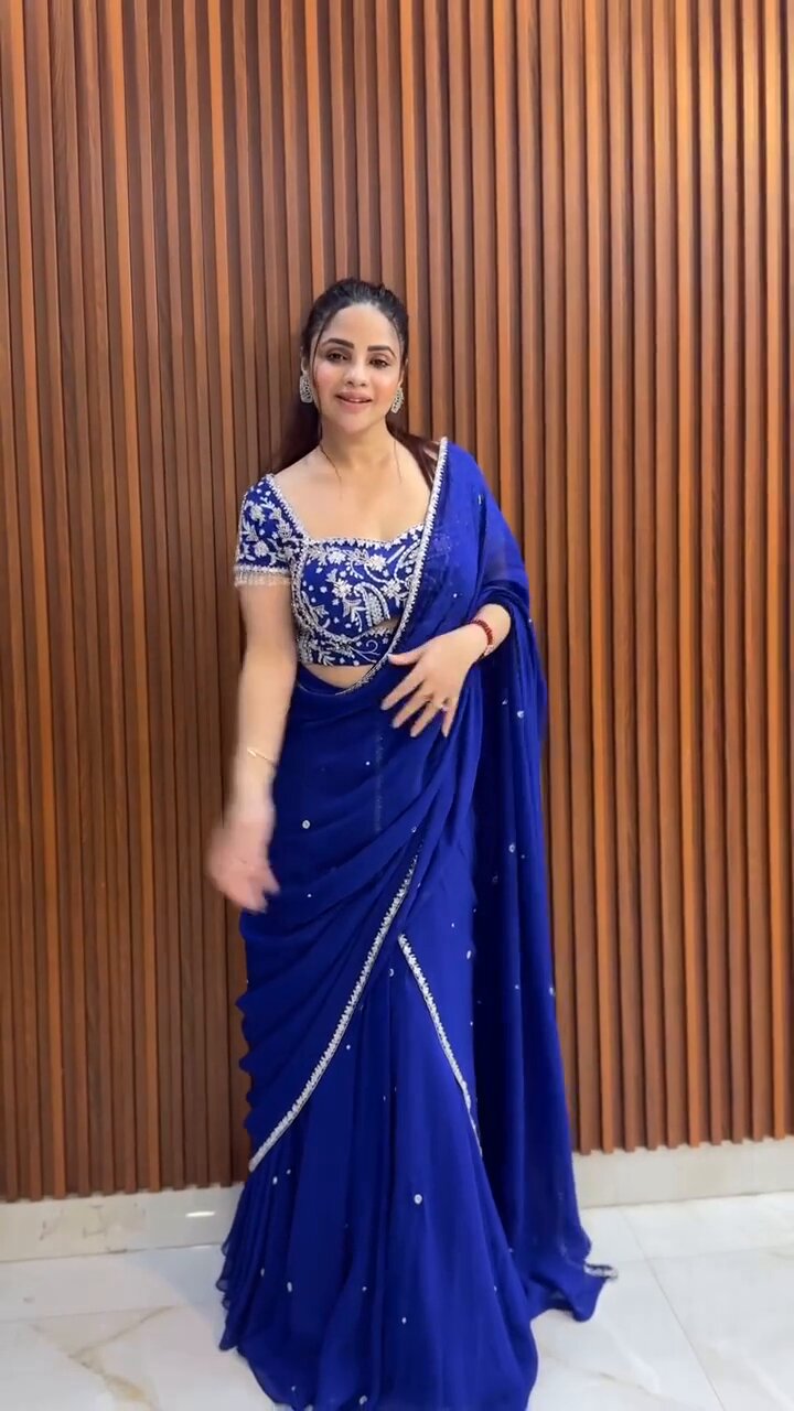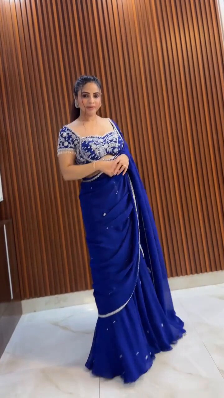 Glamorous Royal Blue Designer Embroidered Lehenga Saree