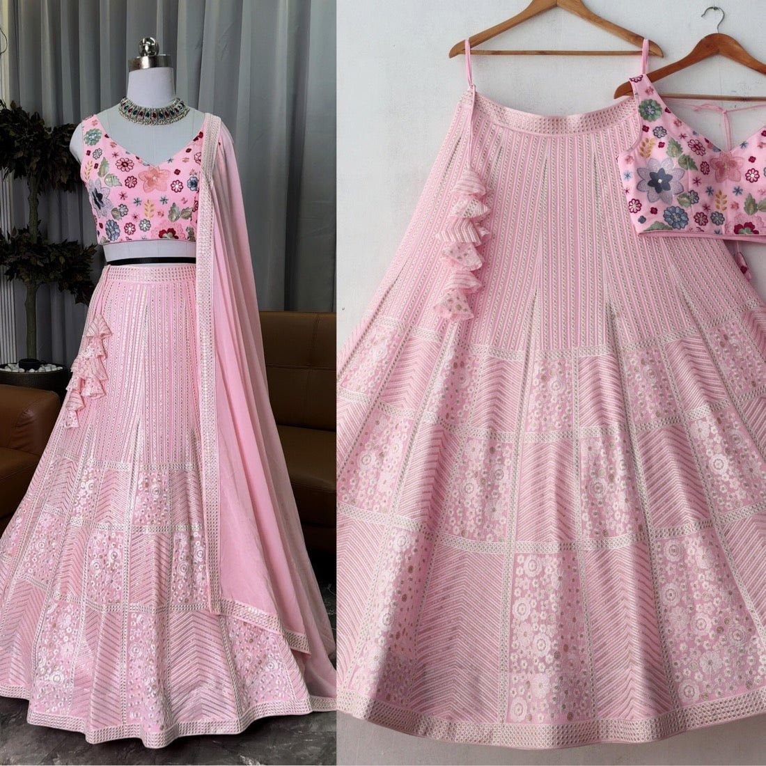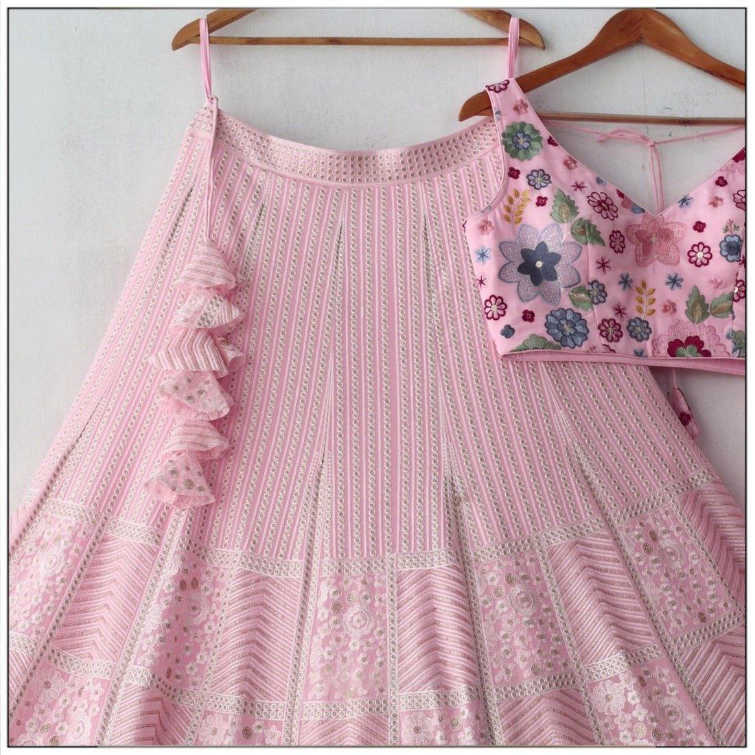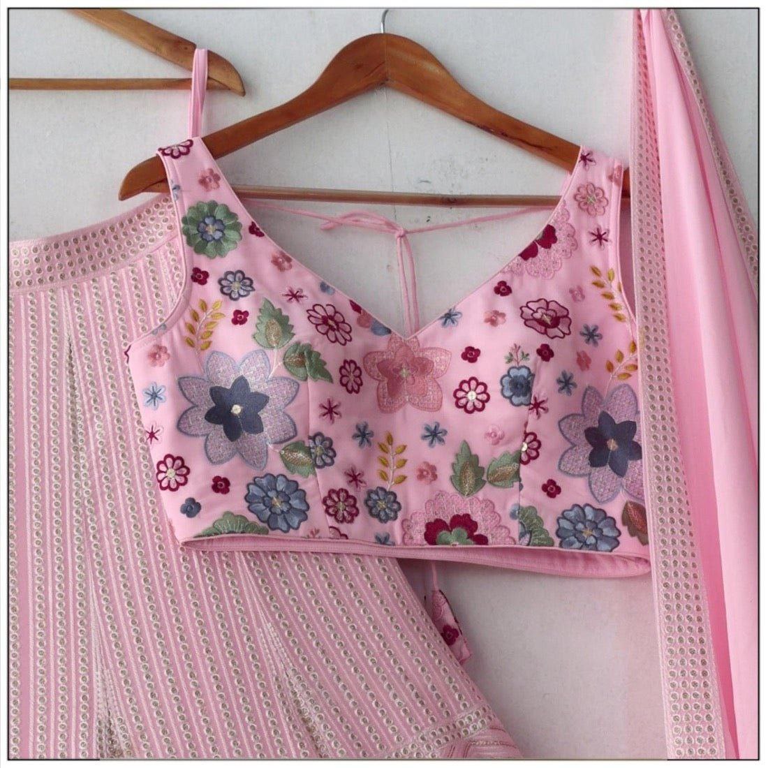 Graceful Baby Pink Embroidered Lehenga Choli with Floral Blouse and Matching Dupatta