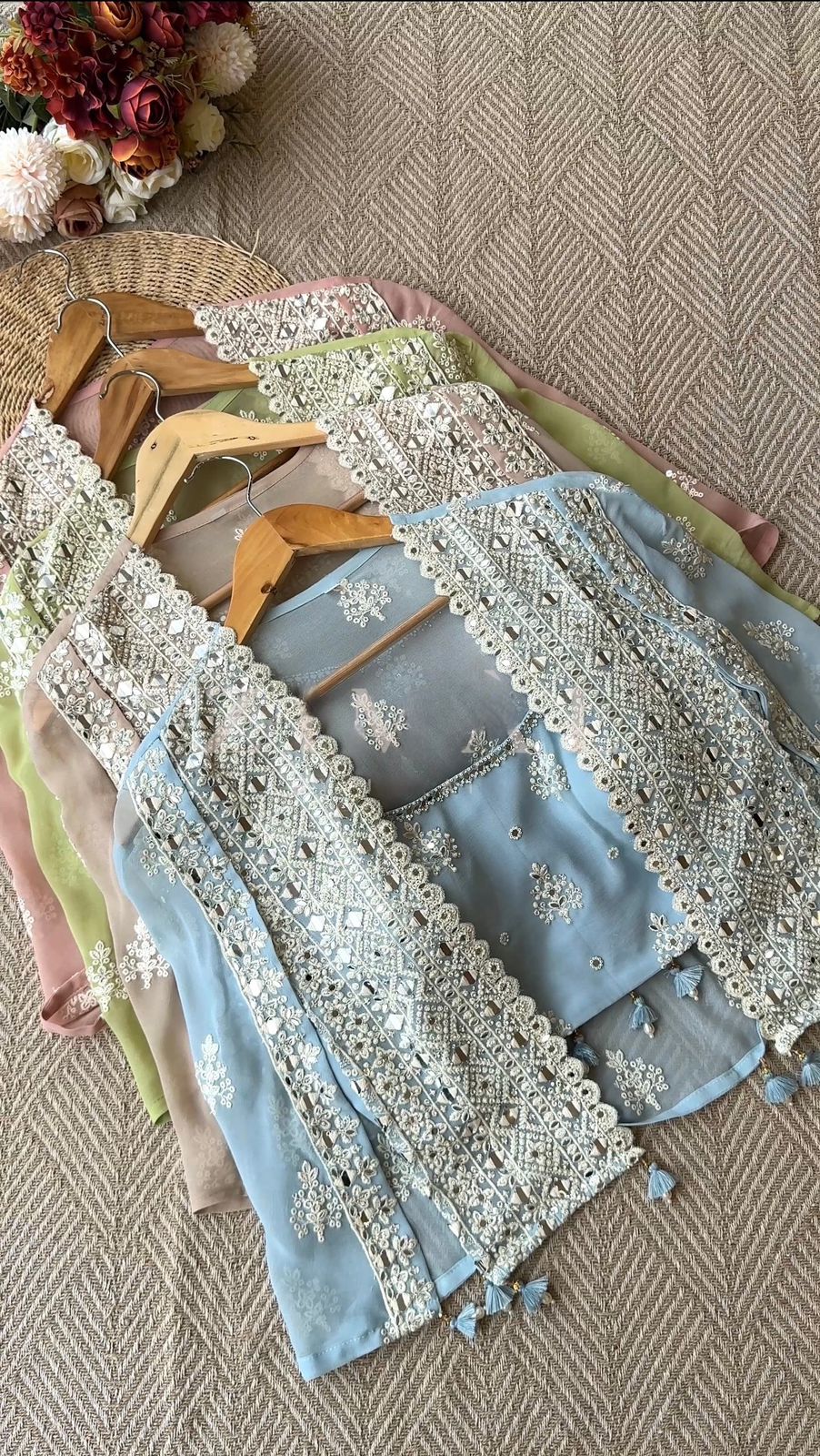 #SHURG : FOX GEORGETTE WITH REAL MIRROR AND SEQUENCE EMBROIDERY WORK