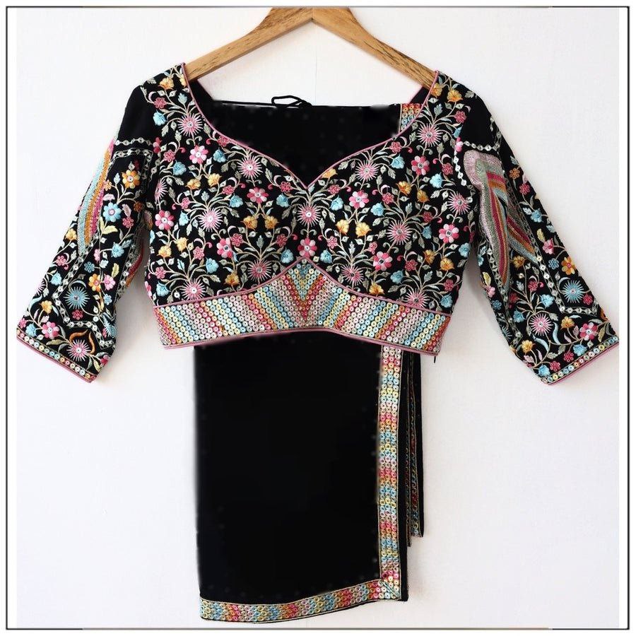choli: Faux Georgette With Multi Thread Embroidery & Sequence Work (unstitch)
