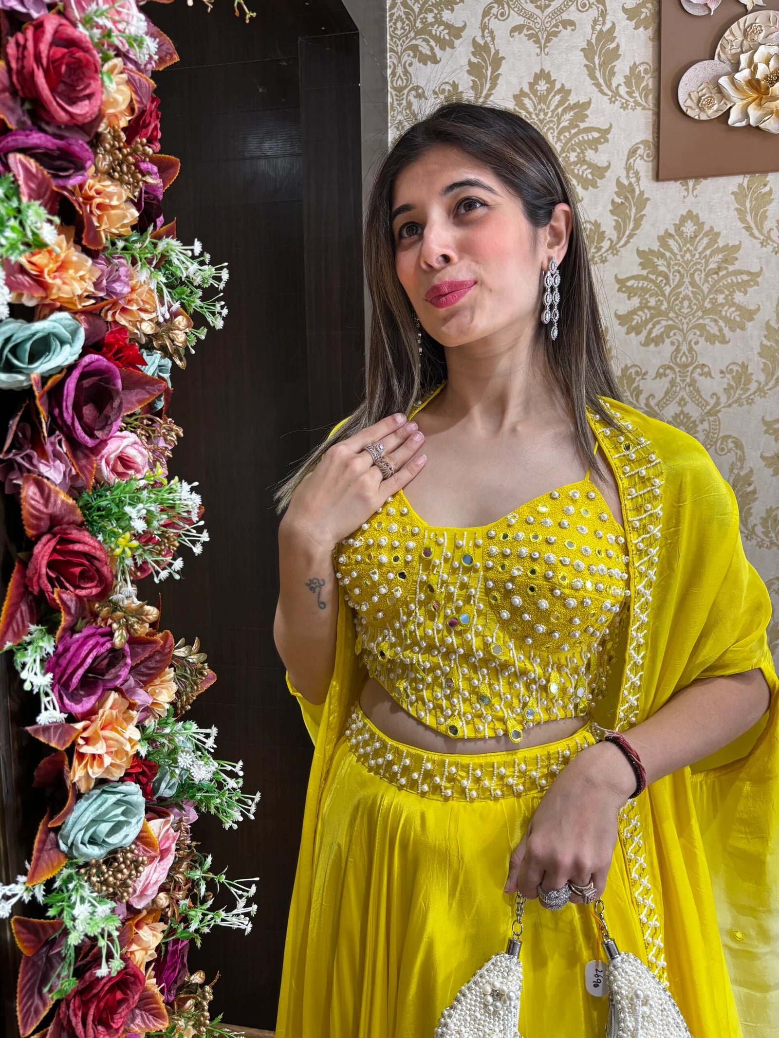 LUXE SKIRT CORSET BLOUSE WITH CAPE-YELLOW