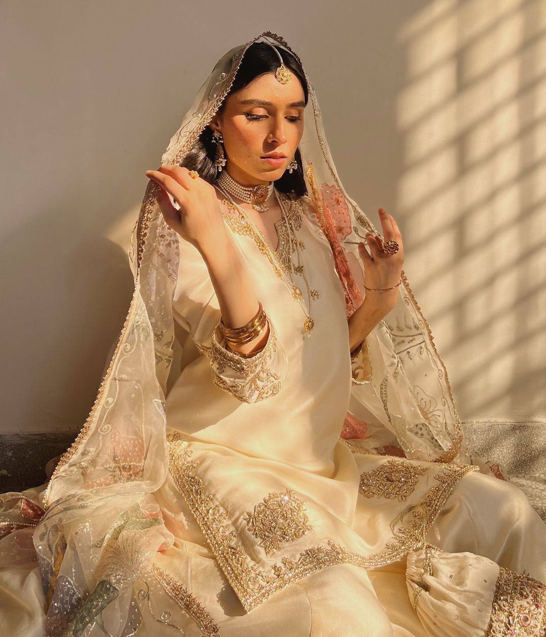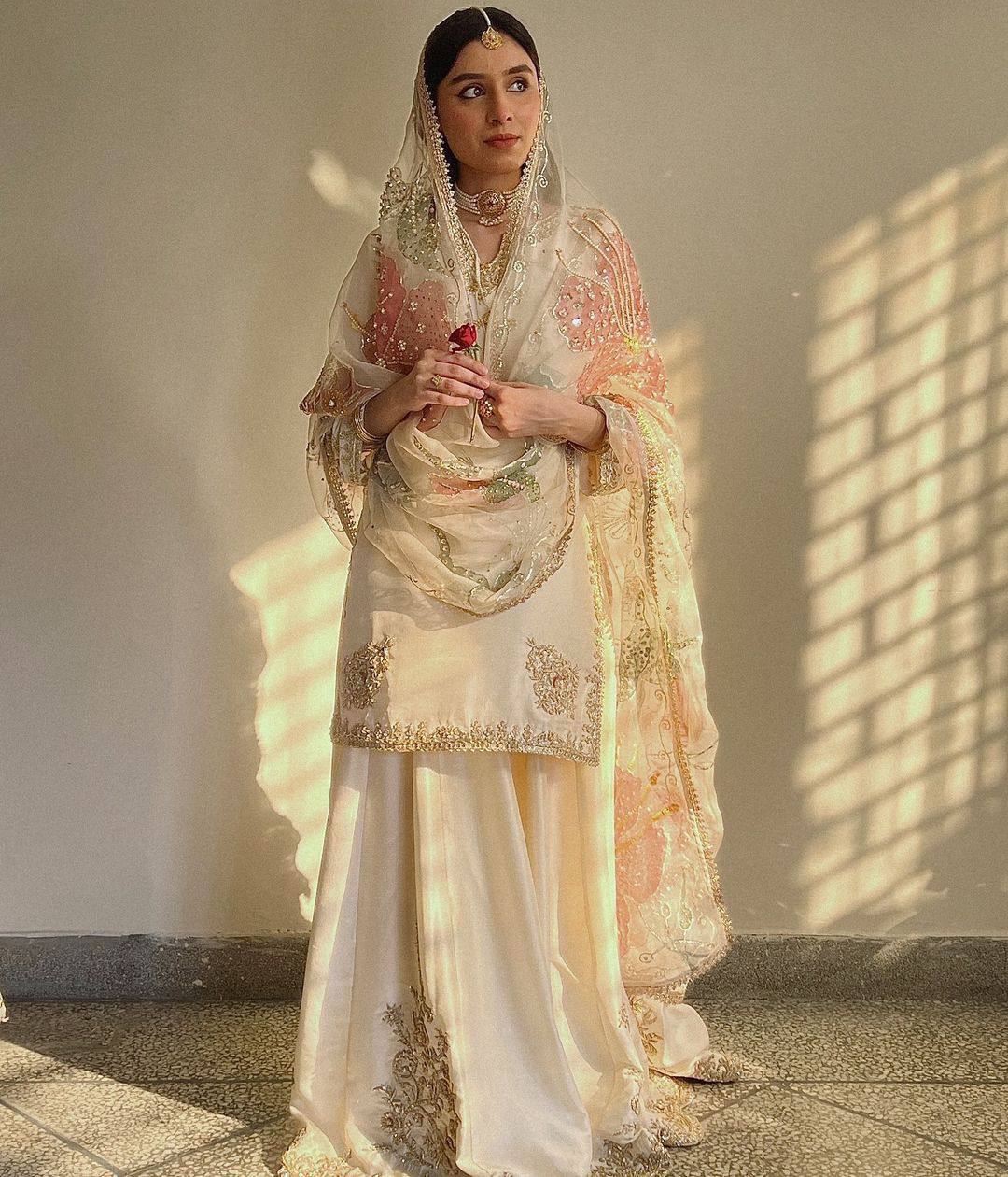 Maria Handpainted Dupatta with Embellished Kameez & Sharara Set