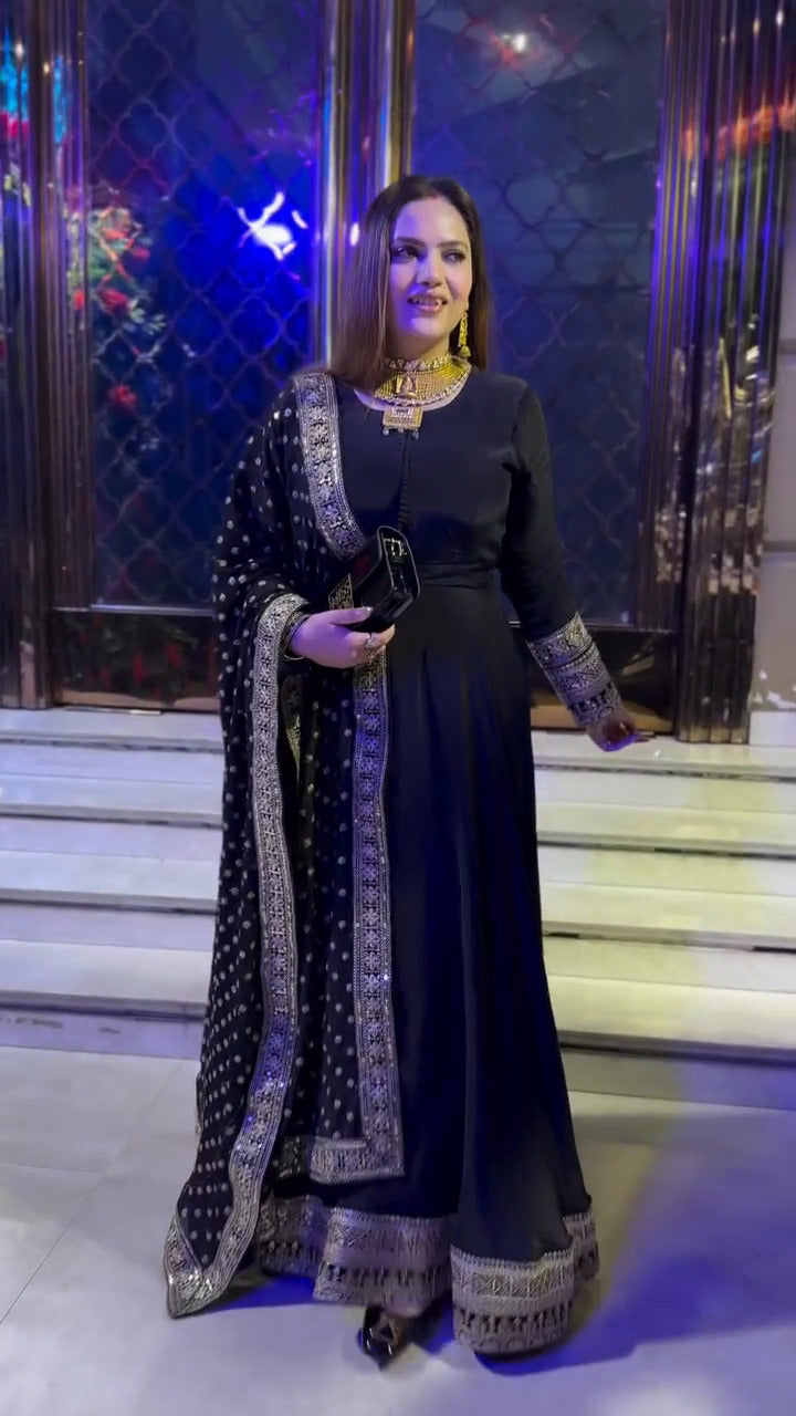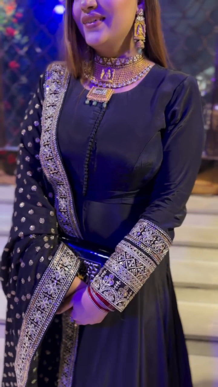 Mehfil Black Grace Ensemble Embroidery Work Anarkali Suit