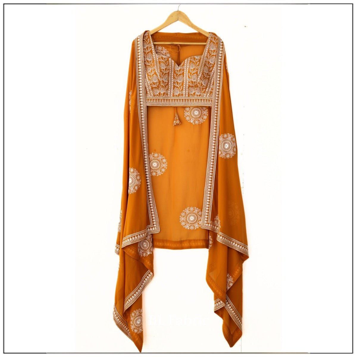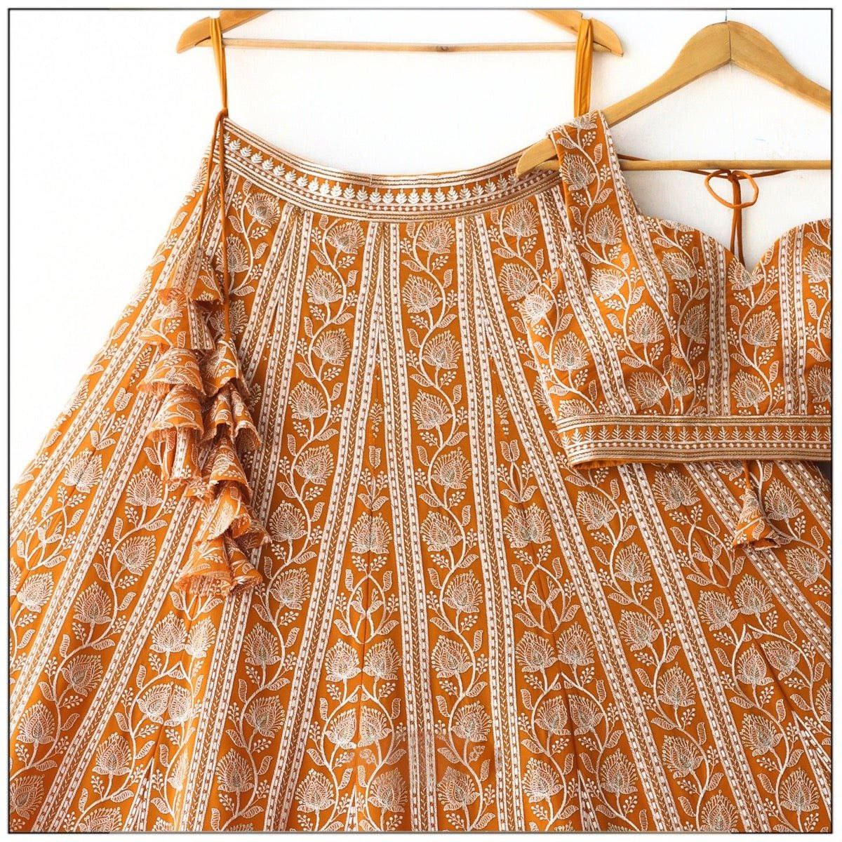 Orange Embroidered Lehenga Choli Set with Traditional White Threadwork and Matching Dupatta