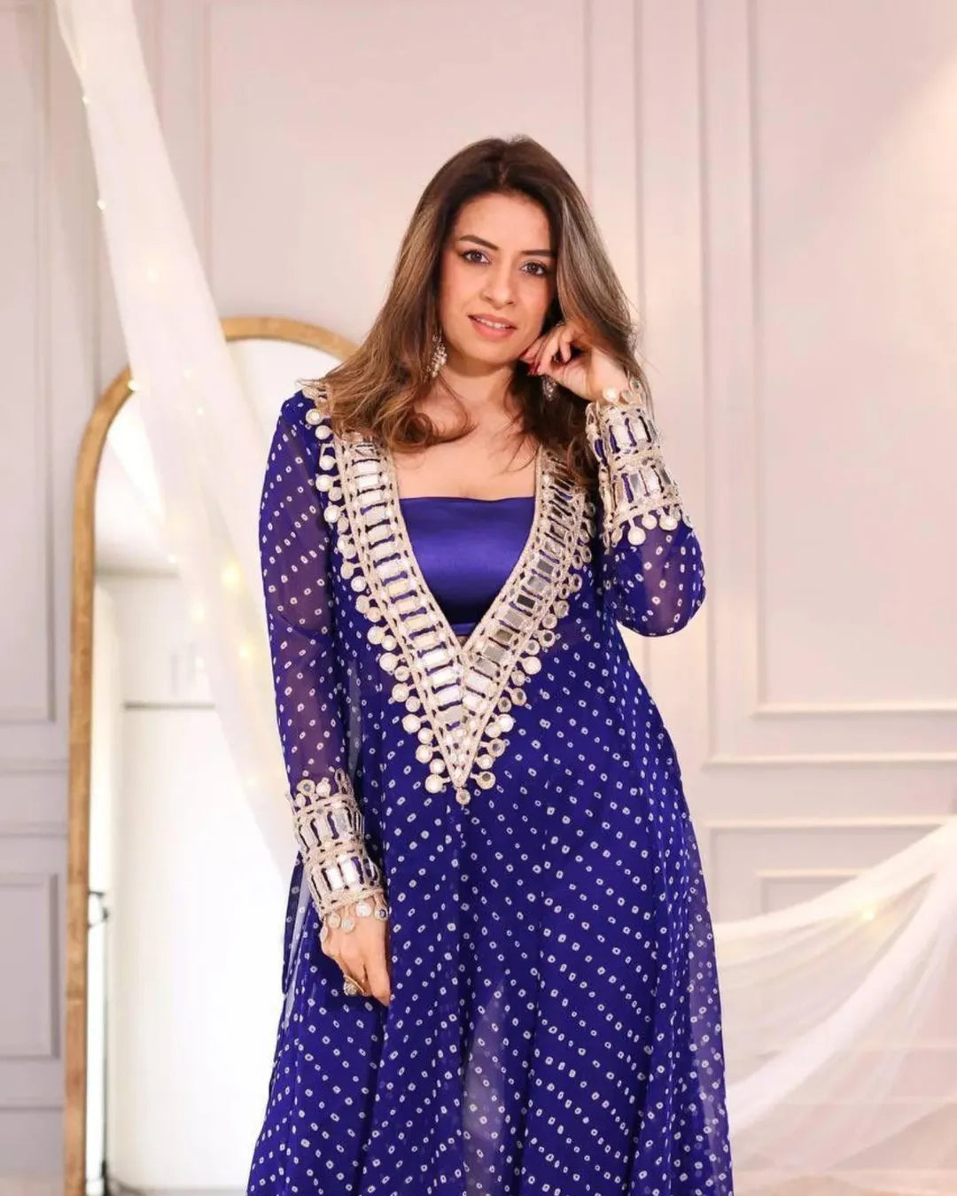 Presenting Beautiful Glam Mirror Hand Work Anarkali Set