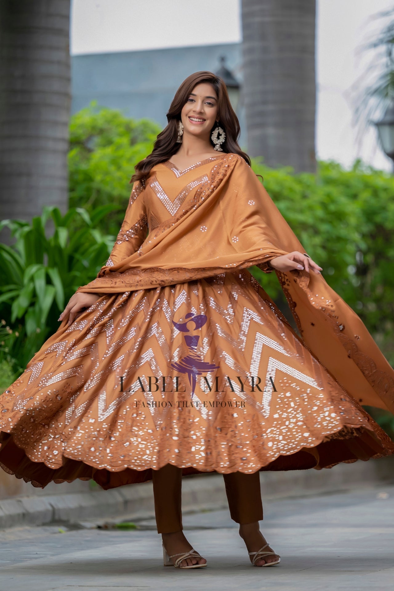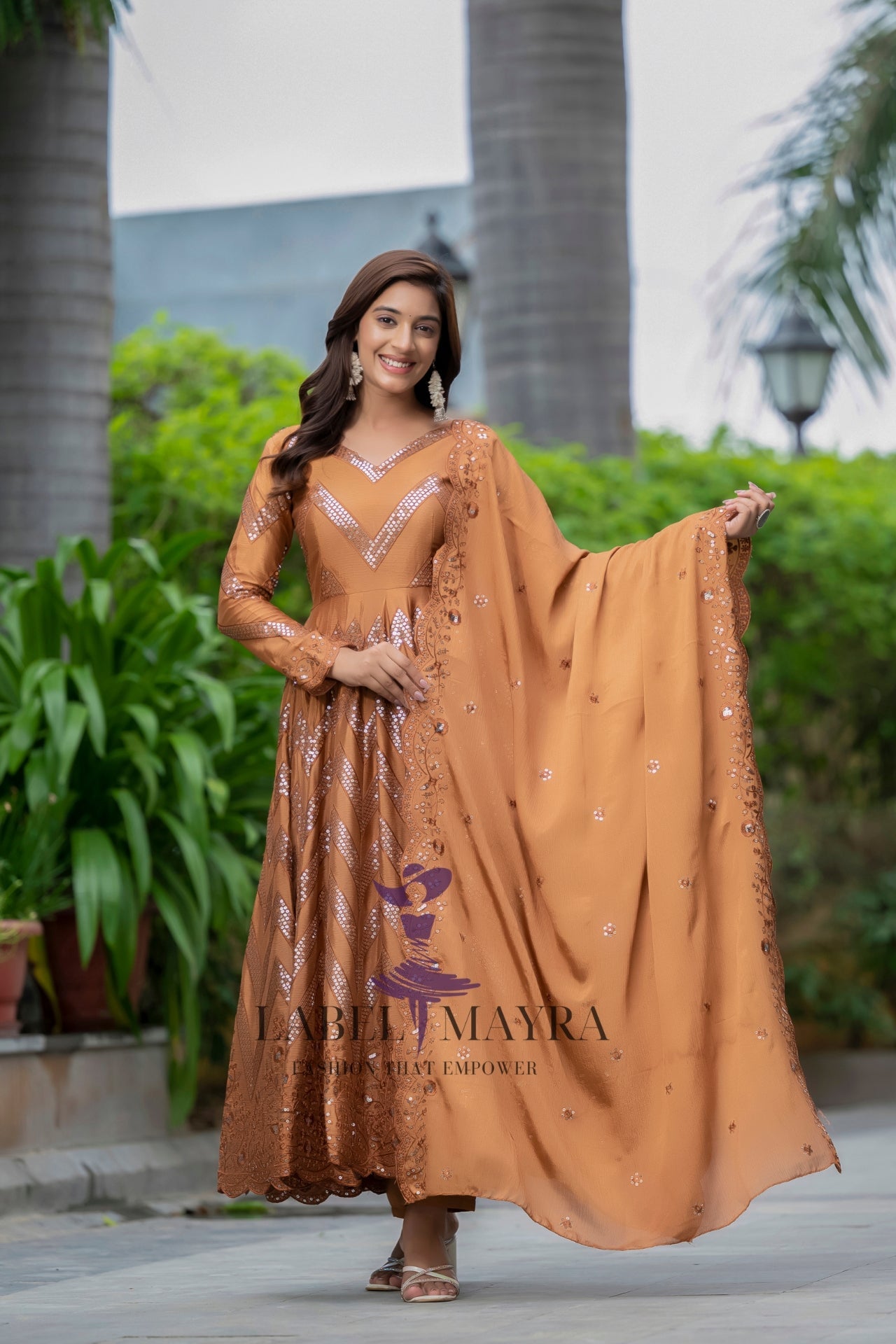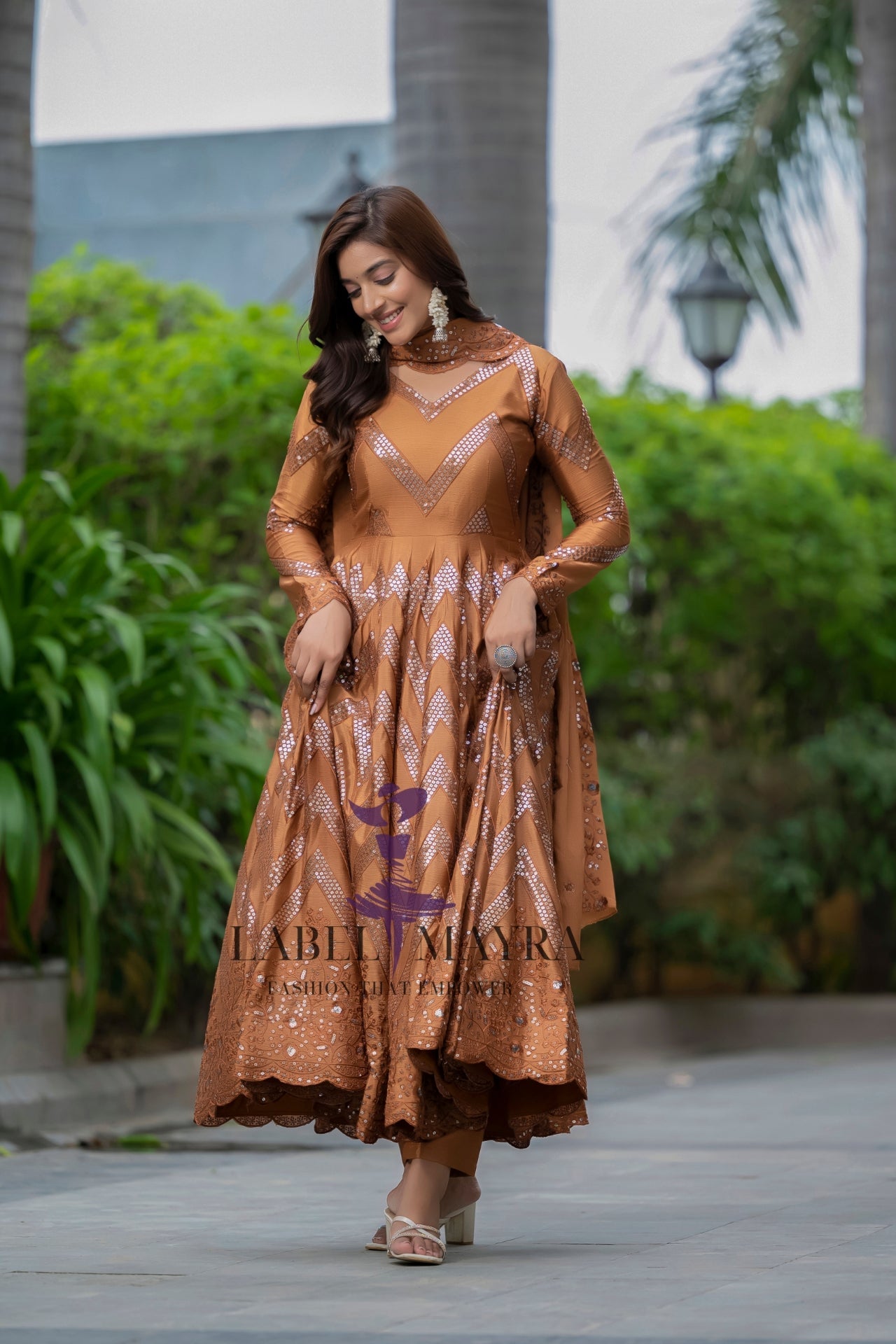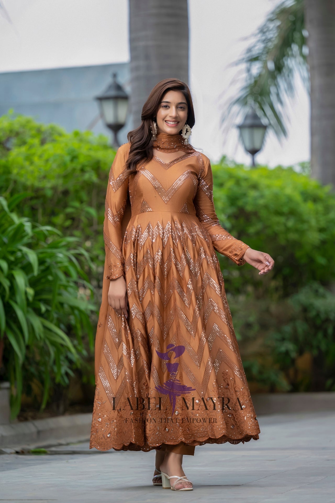 Sakhi Brown heavy embroidered Anarkali set