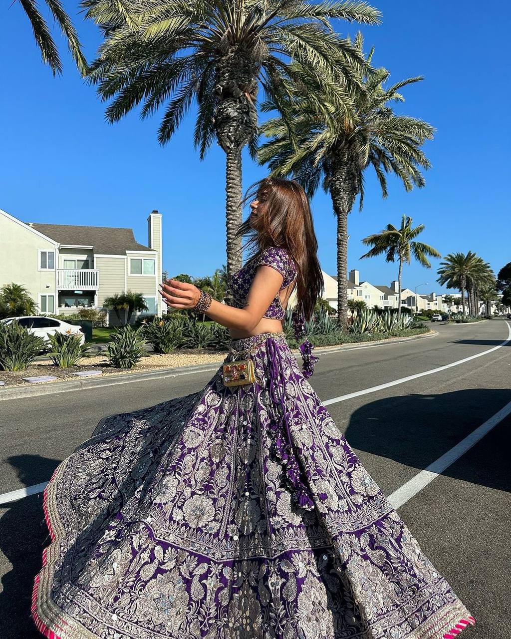 Wine Sequin Embroidered Pure Viscose Jacquard Lehenga Set
